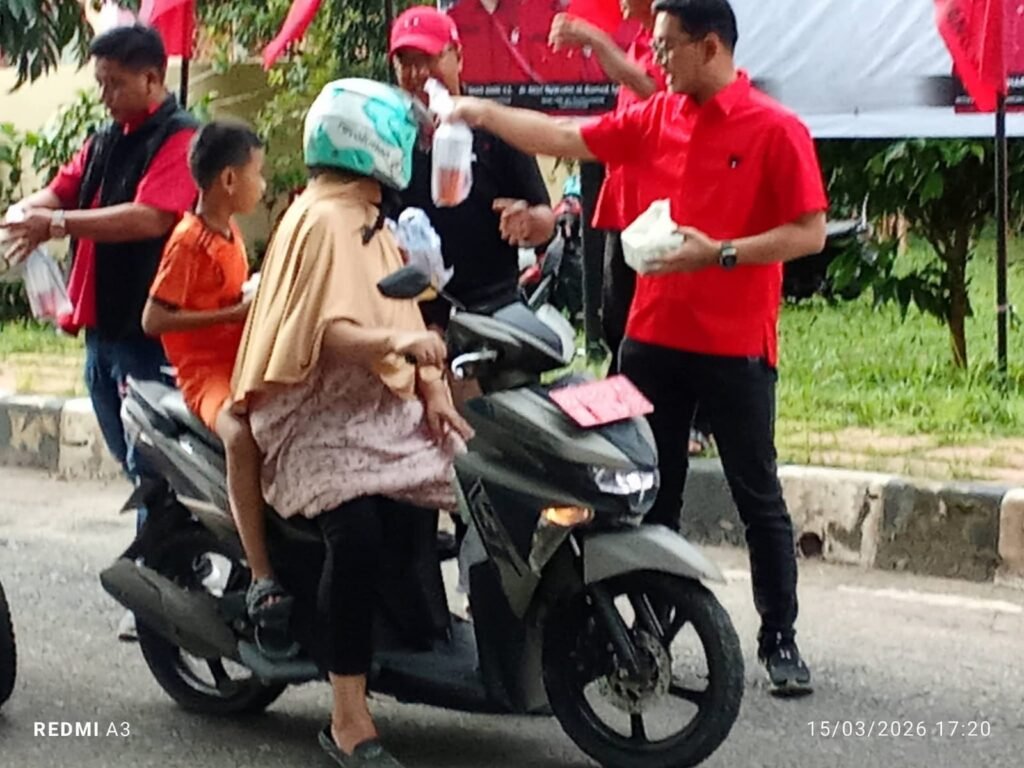 Kayuagung – Dewan Pimpinan Cabang (DPC) Partai Demokrasi Indonesia Perjuangan (PDIP) Kabupaten Ogan Komering Ilir (OKI) menggelar kegiatan pembagian takjil kepada masyarakat yang melintas di jalan tepat di depan kantor Sekretariat DPC PDIP OKI. Kegiatan positif ini dipimpin langsung oleh Ketua DPC PDIP OKI, Febriansyah Wardhana. Minggu, (15/3/2026).