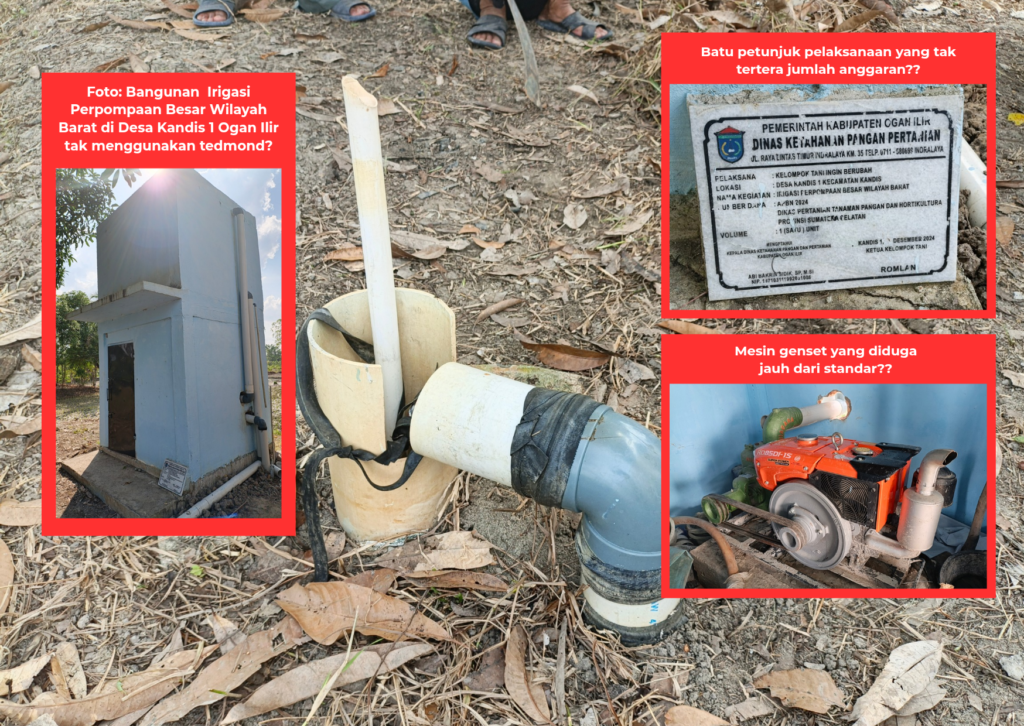 Ogan Ilir – Warga masyarakat dari kelompok tani di Desa Kandis 1, Kecamatan Kandis, Kabupaten Ogan Ilir, mengeluhkan kondisi irigasi perpompaan besar yang merupakan proyek Dinas Pertanian Provinsi Sumatera Selatan tahun anggaran 2024. Mereka menyatakan bahwa irigasi tersebut belum memberikan manfaat maksimal bagi para petani setempat.