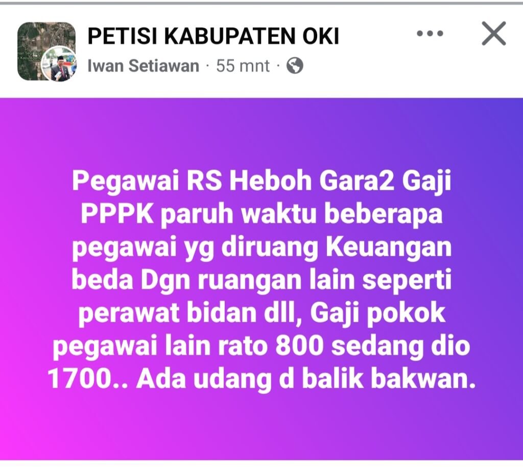 Kayuagung – Polemik terkait perbedaan gaji Pegawai Pemerintah dengan Perjanjian Kerja (PPPK) paruh waktu di lingkungan Pemerintah Kabupaten Ogan Komering Ilir (OKI) mencuat ke permukaan. Kabar ini menimbulkan keresahan di kalangan pegawai Rumah Sakit (RS), terutama terkait adanya disparitas gaji yang cukup signifikan antar pegawai, menuntut adanya transparansi dan keadilan dalam sistem penggajian.