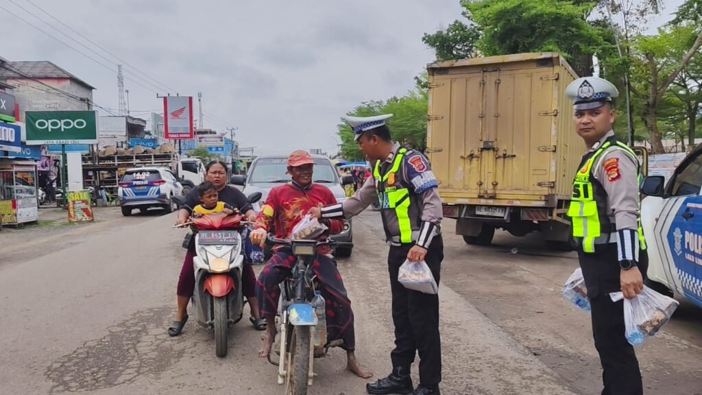 Selain membagikan nasi kotak, jajaran Sat Lantas juga memberikan imbauan keselamatan berlalu lintas kepada masyarakat. Hal ini dilakukan sebagai upaya untuk menekan angka kecelakaan dan menciptakan kondisi lalu lintas yang aman dan tertib di wilayah Kabupaten Mesuji, ungkap AKP Rudi.
