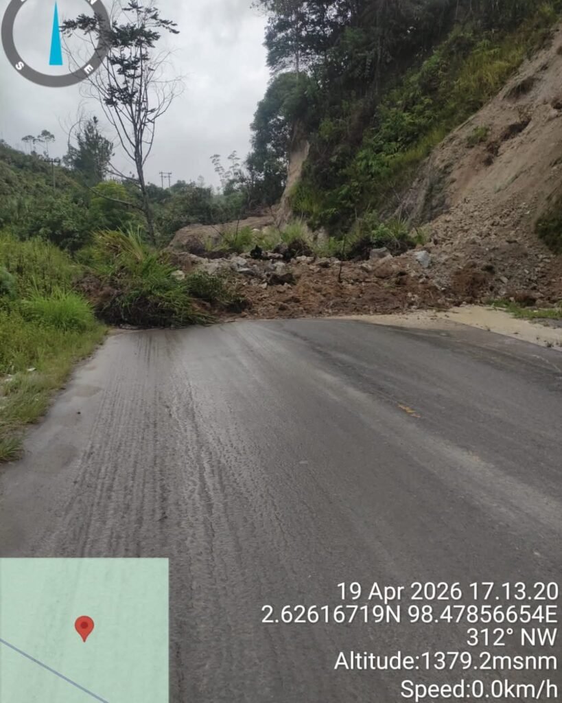 Tingginya curah hujan akhir-akhir ini telah mengakibatkan longsor di jalur vital lintas Sumatera, Hal ini kembali menguji kesiapsiagaan aparat dan masyarakat. Akses jalan lintas nasional menuju Tele, tepatnya di Pangiringan, Desa Parbuluan V, Kecamatan Parbuluan, Kabupaten Dairi, sempat lumpuh total akibat material tanah yang menutup badan jalan pada Minggu, (19/4/2026).