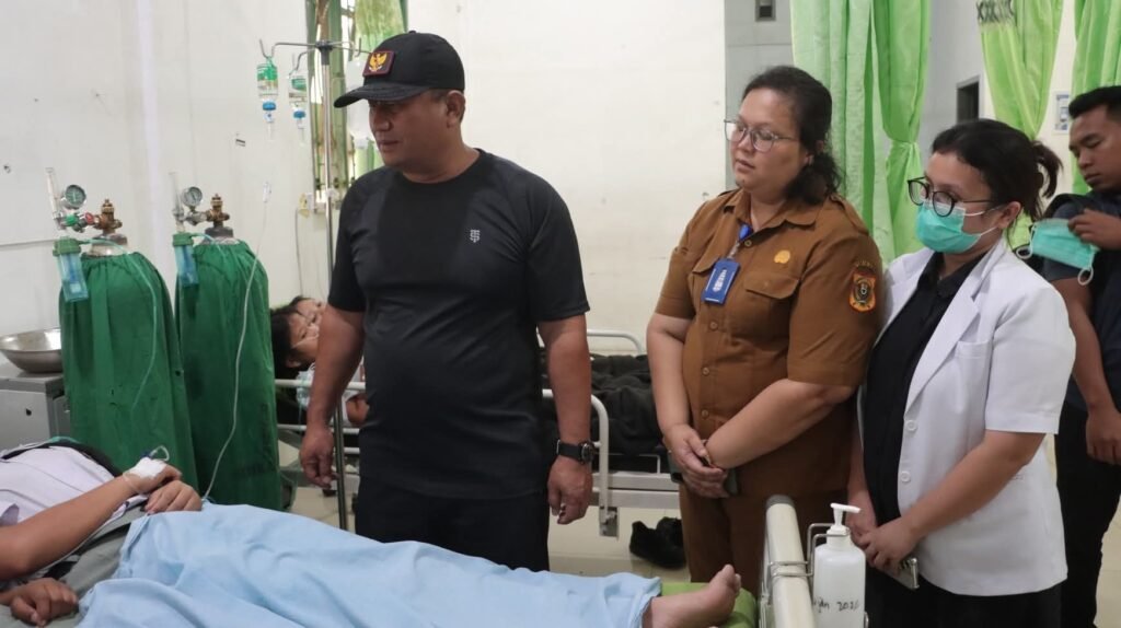 Wakil Bupati Dairi Wahyu Daniel Sagala, kunjungi siswa SMK Swasta HKBP Sidikalang yang di rawat di Rumah Sakit Umum Daerah (RSUD) Sidikalang yang mengalami gangguan pencernaan akibat konsumsi MBG, Selasa (10/2/2026). Para siswa tersebut sebelumnya menyantap menu MBG yang di salurkan oleh SPPG Sidikalang 3 yang berada di jalan Palapa pada Senin (9/9/2026).